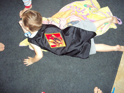 A superhero cape!! One very excited little boy kept saying "I can fly, I can fly!" It has his initial on one side...