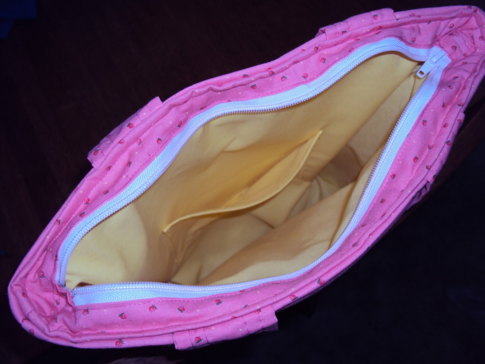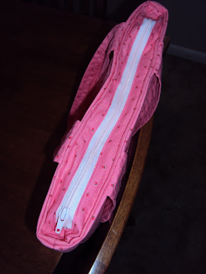 It was fiddly to top stitch and therefore it isn't as neat as I would like but I had trouble getting the bag through my machine, especially the end parts of the zipper. I've only sewn bags on mum's machine before so I was a bit (read: very!) annoyed that my machine didn't seem up to the task.