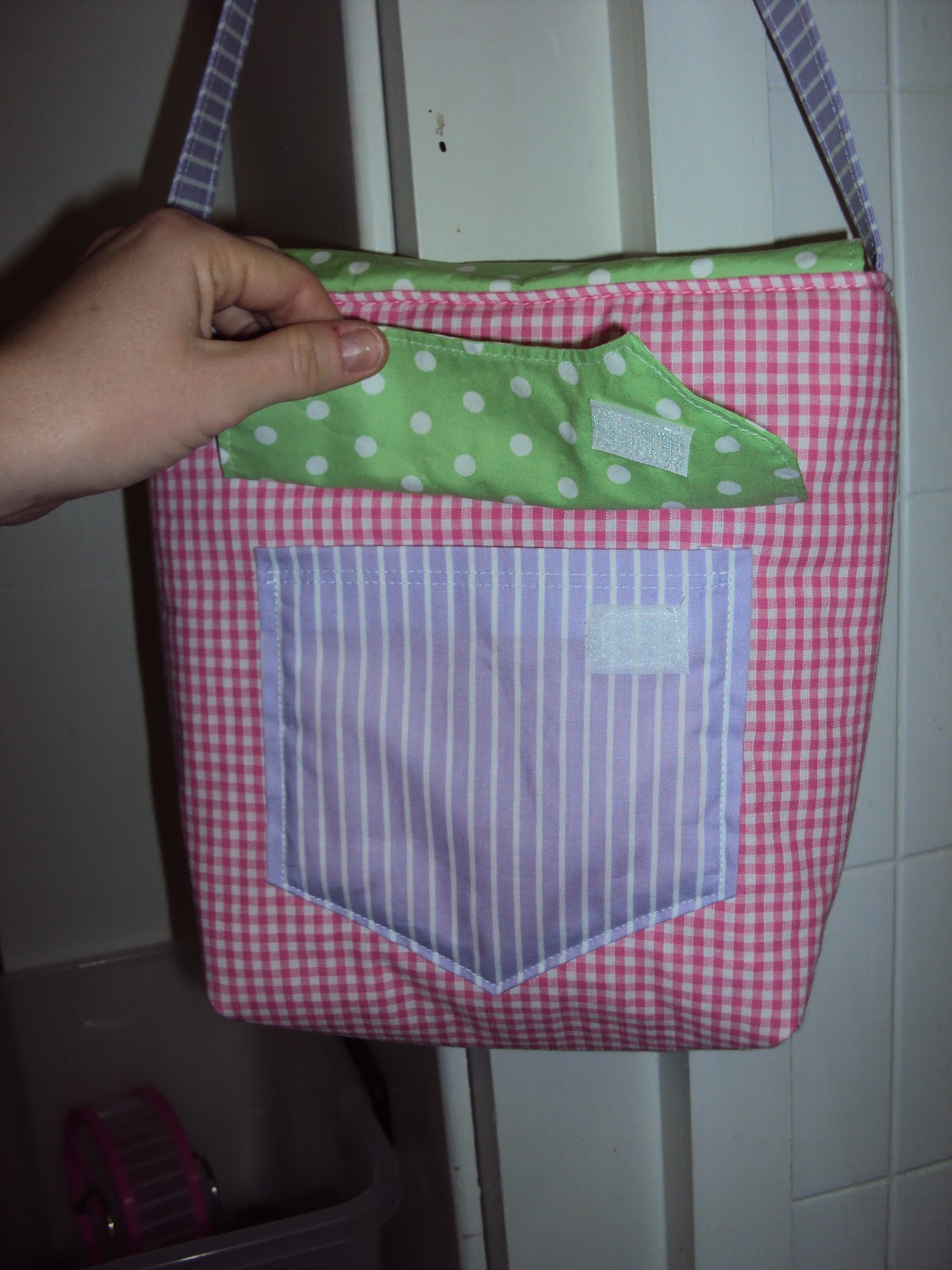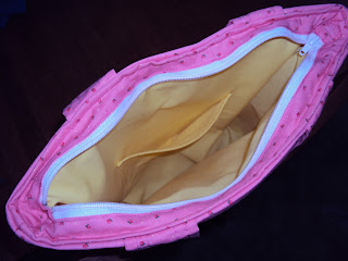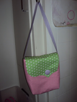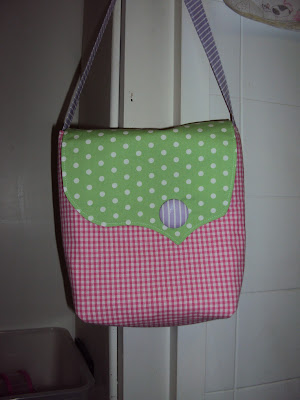 The pink one was made a few weeks ago for miss M to use as a library bag. The interior was fabric I had second thoughts of using halfway through my swap piece so really the bag was halfway made already.
