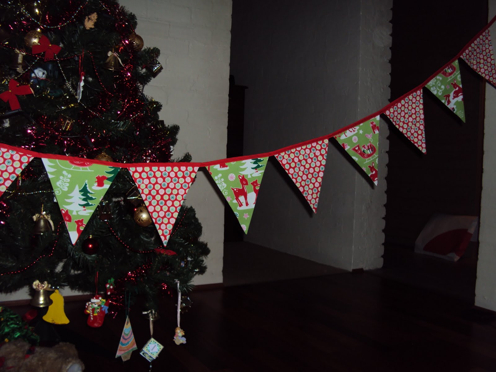 Next, I made some Christmas bunting. Secretly, the idea behind the bunting was to ensure that Ms F doesn't forget us and now she will think of us at least once every year when she hangs her Christmas decorations ;p