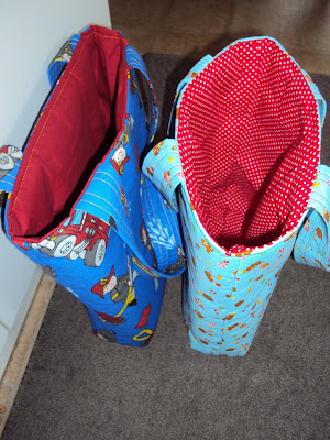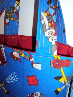 I'm much happier with the fireman and hedgehog bags because the lining is interfaced whereas the pink bag has the exterior fabric interfaced and you can see the bubbling (un-smoothness if that is a word!) on it.