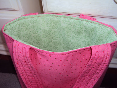 The pink one was made a few weeks ago for miss M to use as a library bag. The interior was fabric I had second thoughts of using halfway through my swap piece so really the bag was halfway made already.
